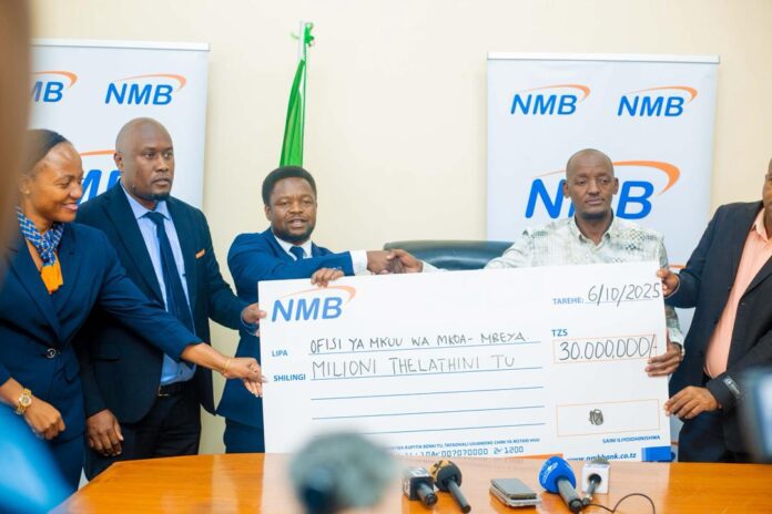 Benki ya NMB, imeikabidhi ofisi ya Mkoa wa Mbeya hundi ya Sh. milioni 30 kwa ajili ya udhamini wa maadhimisho ya wiki ya vijana kitaifa na sherehe za kitaifa za kuzima Mwenge wa Uhuru zitakazofanyika Oktoba 14 mwaka huu jijini Mbeya.