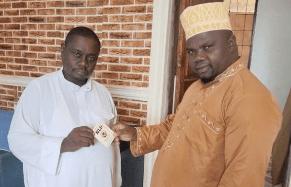 Katibu Mkuu wa Chama Cha NLD, Doyo Hassan Doyo akimkabidhi (kulia) akimkabidhi kadi ya chama hicho Makamu Mwenyekiti wa Bodi ya Wadhamini wa Chama cha ADC,Twaha Mngatwa, baada ya kujiunga na chama hicho.