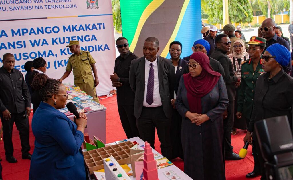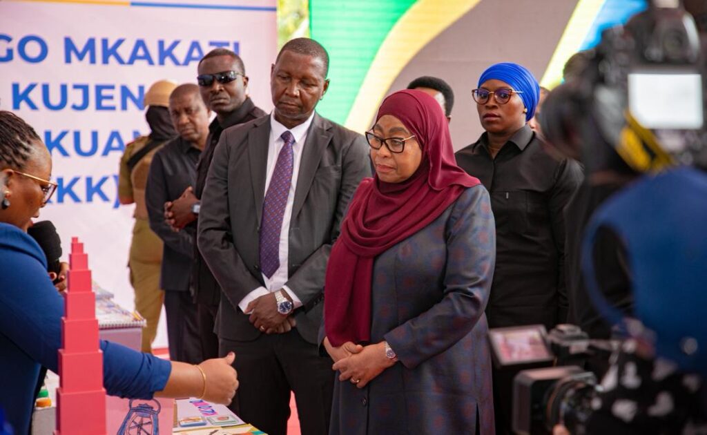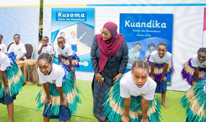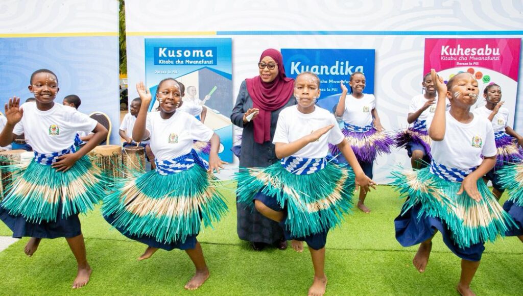 Rais Dk. Samia Suluhu Hassan akifurahia mapokezi na burudani kutoka kwa watoto wakati wa tukio la uzinduzi wa Mpango Mkakati wa Kisayansi wa kujenga Umahiri wa Kujua Kusoma, Kuandika na Kuhesabu (KKK) kuanzia wanafunzi wa elimu ya awali mpaka Darasa la Pili leo Januari 29, 2026.
