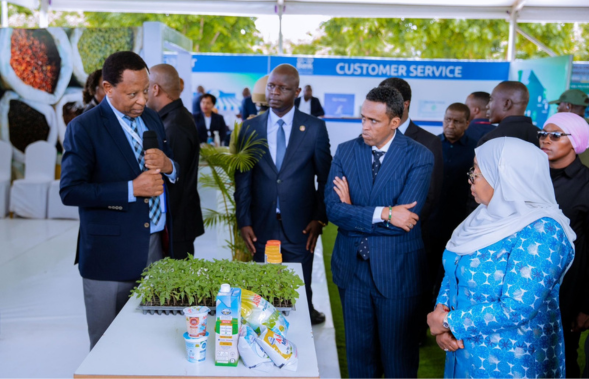 Rais wa Jamhuri ya Muungano wa Tanzania, Dk. Samia Suluhu Hassan akikagua mabanda ya maonesho ya masuala ya kilimo nje ya Ukumbi wa Mikutano Jakaya Kikwete mara baada ya uzinduzi wa Jengo la Makao Makuu ya Benki ya Ushirika Tanzania, Jijini Dodoma tarehe 28 Aprili, 2025.