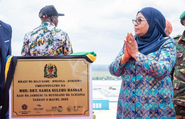 Rais Samia Suluhu Hassan, ameweka jiwe la msingi kuashiria uzinduzi wa Mradi wa Maji Same – Mwanga – Korogwe wakati wa ziara yake ya siku moja mkoani Kilimanjaro leo, Machi 09, 2025.