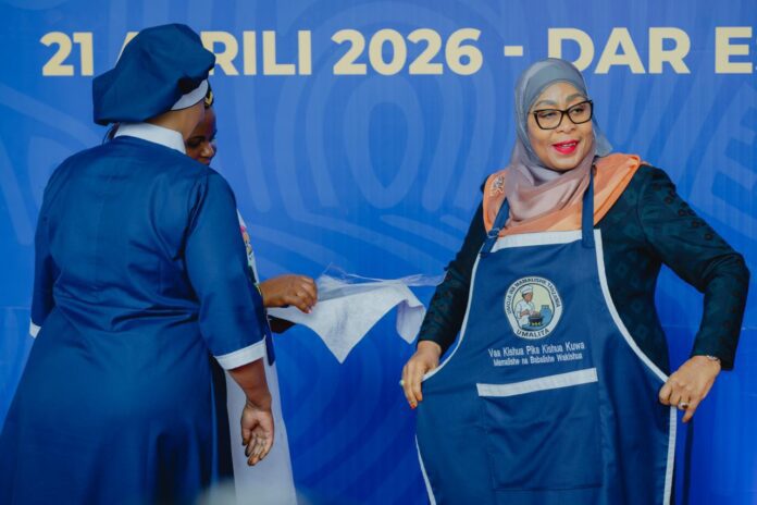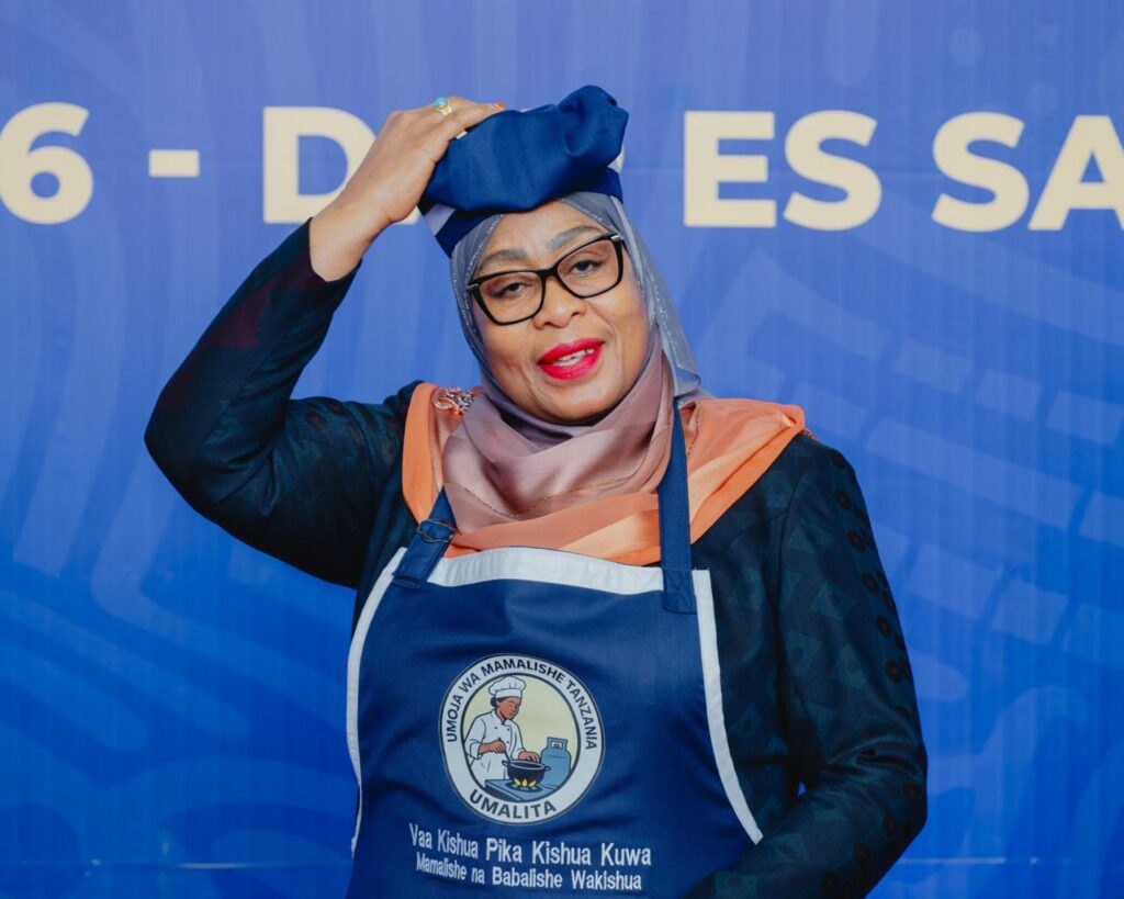 Katika tukio hilo, Rais Samia alivutia hisia za washiriki baada ya kuonekana akiwa amevalia vazi la kupikia, ishara ya kuunga mkono juhudi za kuimarisha lishe bora katika familia na jamii kwa ujumla.