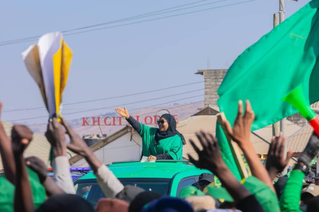 Mgombea Urais wa Jamhuri ya Muungano wa Tanzania kupitia Chama cha Mapinduzi (CCM) Mhe. Dkt. Samia Suluhu Hassan akiomba Kura kwa umati wa Wananchi wa Jimbo la Uyole Mkoani Mbeya waliofurika Barabarani kumlaki wakati wa Mikutano ya Kampeni za Uchaguzi Mkuu leo September 05, 2025.